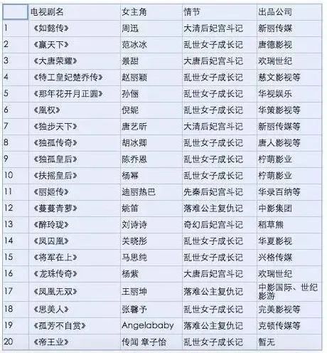 △網上有人統計過這幾年的古偶大女主劇,題材都是很相近的