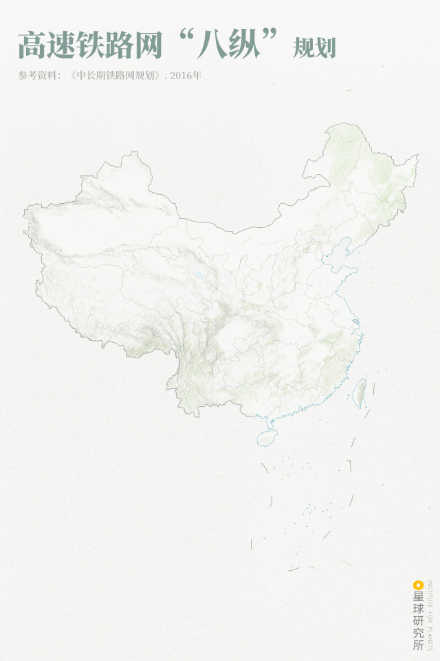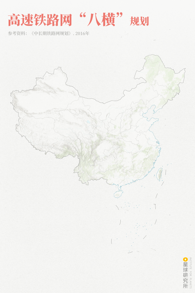 (高速鐵路網“八縱”規劃,製圖@鞏向傑/星球研究所)