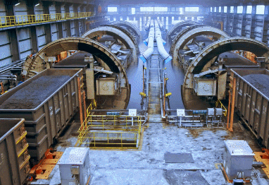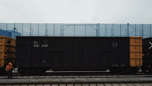 首先重車調車機牽引滿載的列車行進至翻車機前,再通過撥車機進行定位,車廂自動摘鈎分離,隨後翻車機將車輛緊緊“抱在懷中”。