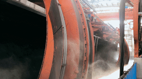 翻車機配備的負壓除塵系統會根據不同情況,使用噴水或噴霧裝置進行除塵,保證車間內粉塵控制在安全標準,避免二次污染。