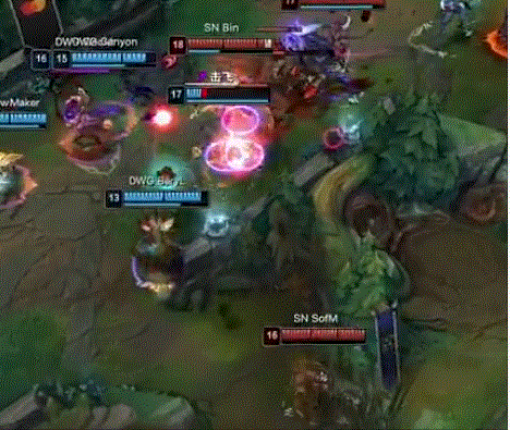 值得注意的是,Bin使用的劍姬在前期SN劣勢的情況下穩步發育,在中期爆發出對手無法阻擋的能力,多次“一秒四破”技驚四座,並在最後一波團戰拿到五殺。