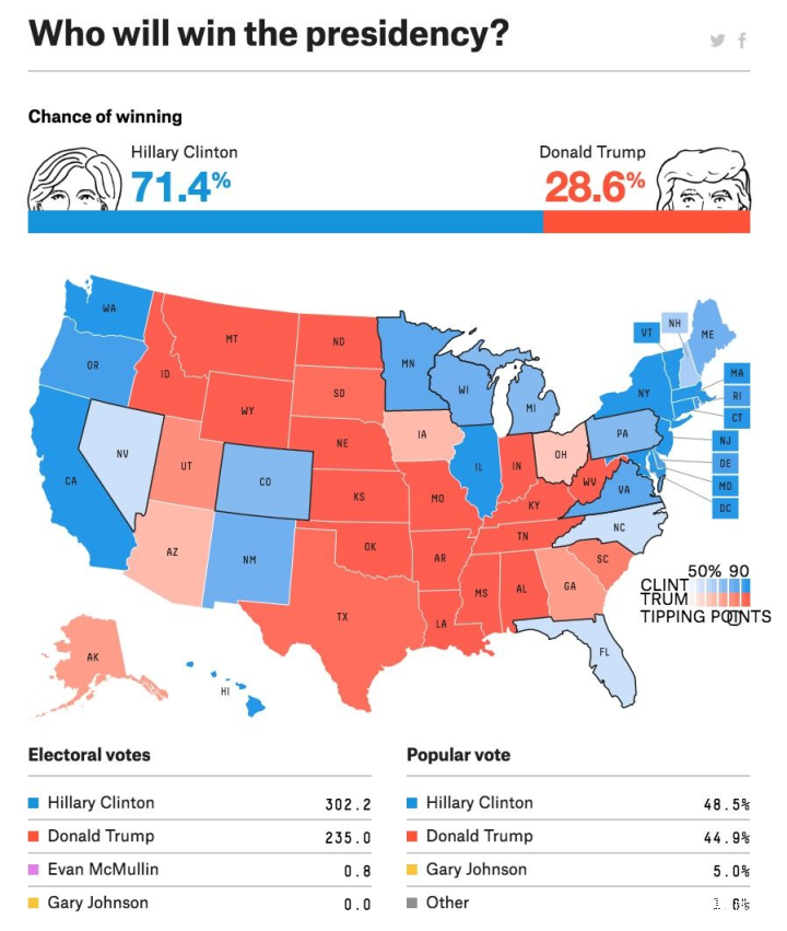 2016年FiveThirtyEight 在大選前預測特朗普只有28.6%的勝率