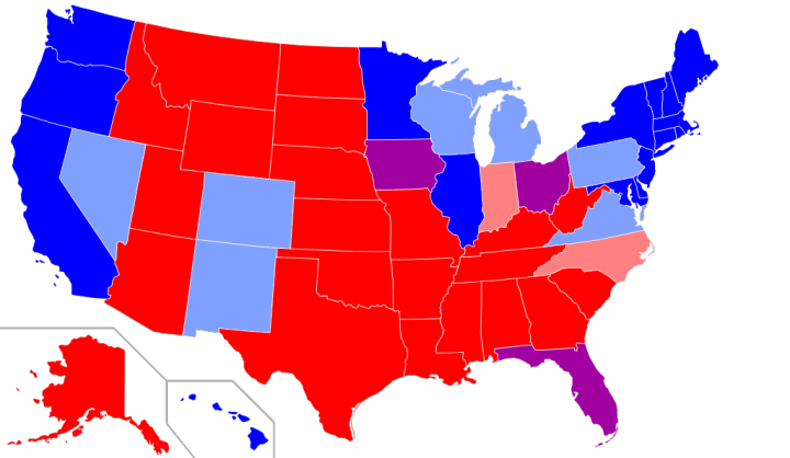 一、選舉中的「紅州」「藍州」和「搖擺州」