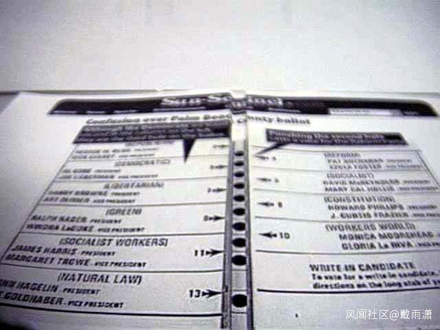 在選票統計出來之後人們發現 Palm Beach 縣確有3407 票投給了這個幾乎沒人聽説過的「改革黨」,而根據這一非主流黨派推舉的候選人本人和該黨當地代表的看法,頂多也就指望有幾百人支持他們。