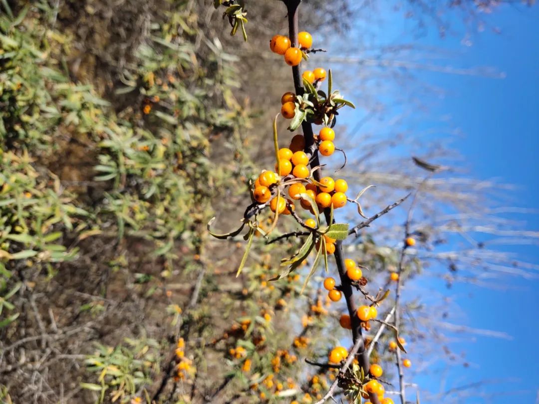 我們的志願者兼攝像賈天賜可吃了沒穿長袖的虧,面對簇擁而來的熱情沙棘只能無奈背起了相機,開始猛男穿樹枝。