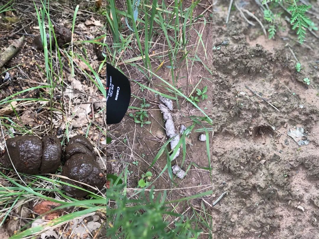 左:野豬鮮便 中:豹貓幹便 右:狍子蹄印