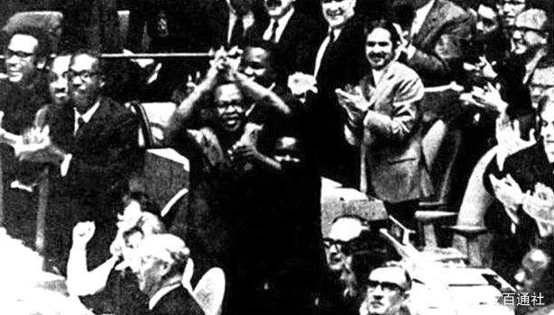 △ 1971年10月第26屆聯合國大會以76票的贊成票,35票的反對票和17票的棄權票的優勢通過了聯合國第2758號文件,恢復了中國在聯合國的合法席位。聯大會場響起持續達兩分鐘之久的雷鳴般掌聲。