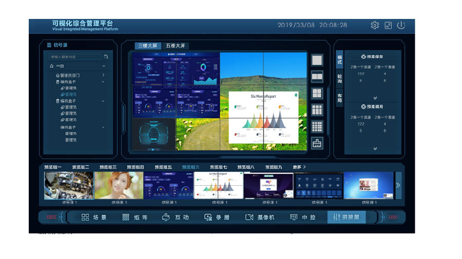 可視化管理平台IMC還支持集拼控管理,場景管理、音頻管理、交互終端通訊管理、錄播管理,中控管理、設備信息管理等。