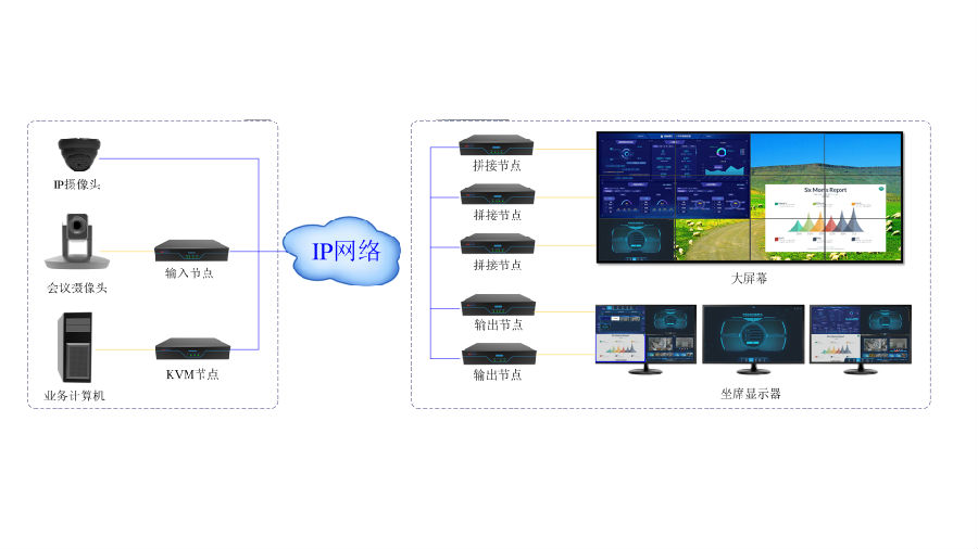 為了滿足這一市場的需求,視通科技經過多年來對技術的深入研究和對用户使用習慣的調研,推出了AS-ADS 4K分佈式顯控解決方案,是一套技術先進、功能完善、性能穩定、操作方便、擴展方便的管理協作系統。此係統是基於IP無中心化設計,嵌入式架構,為用户解決音頻處理、視頻拼接處理、視頻會議處理、網絡傳輸、環境監控、KVM協作、可視化控制等多種功能於一體的現代化、網絡化、互聯互通智能化管理平台。