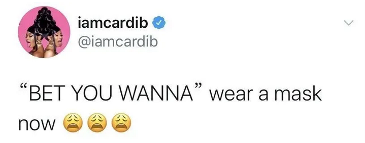 特朗普新冠確診時,卡姐非常歡快地發了條推文幸災樂禍:這回你可得戴口罩了吧!