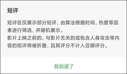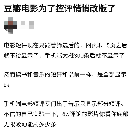 (一週前,有用户在豆瓣發帖表示豆瓣電影已不再顯示全部短評)