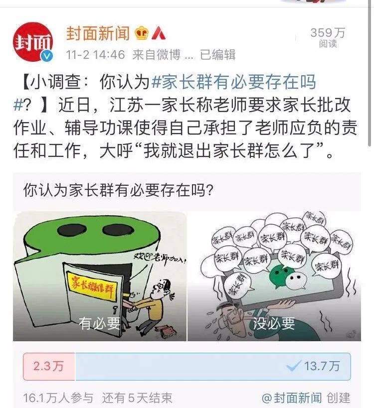 在那場“家長羣是否應該存在”的投票背後,我們分明又看到一個當下打工人苦微信久矣的活生生案例。微信,已經成為攪動老師—學生—家長關係的重要變量。