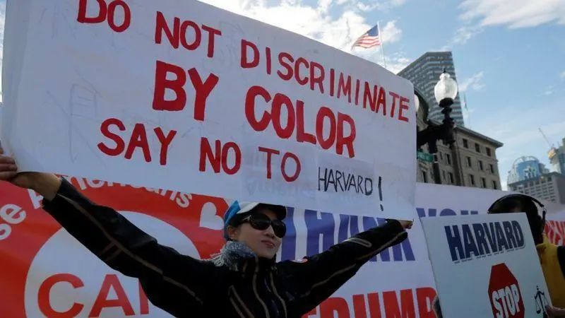 司法部稱,與條件相似的黑人申請者相比,亞裔美國人和白人申請者被錄取的可能性通常只有八分之一至四分之一。
