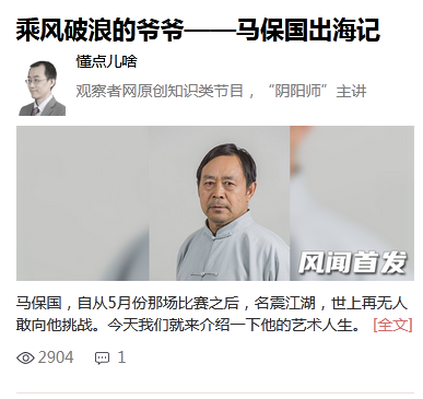 傳送門: 【懂點兒啥】乘風破浪的爺爺——馬保國正傳(上):出海 評論 107 社會