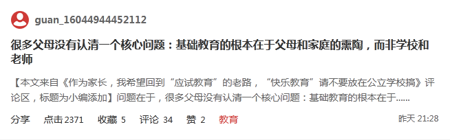 昨晚社區裏用户的這篇帖文《作為家長,我希望回到“應試教育”的老路,“快樂教育”請不要放在公立學校搞》喊出了不少家長的心聲,不過今天,觀友的這個觀點,卻引來了更多聲音:
