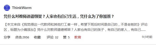 《憑什麼對教師道德綁架?人家也有自己生活,憑什麼為了你加班?》 --- ThinkWarm