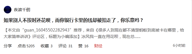 傳送門: 如果別人不按時還花唄,而你銀行卡里的錢卻被扣走了,你樂意嗎? 評論 44 財經