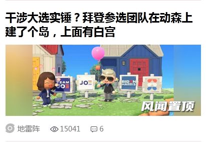 傳送門: 干涉大選實錘?拜登參選團隊在動森上建了個島,上面有白宮 評論 11 娛樂