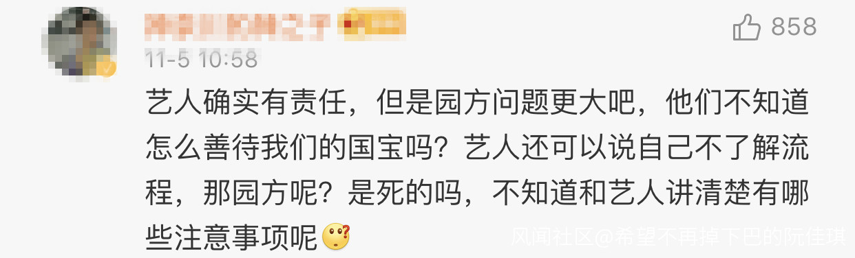 也有網友指出,藝人興許是按照行程參加拍攝不瞭解接觸熊貓的規範,但園方和節目製作方應該就此事負責。