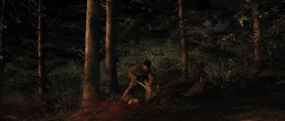 鄧超也不例外,在拍攝被"炸"成兩半的犧牲戲時,鄧超當時躺在那裏的特效,其實是在下半身挖了一個洞,然後做了一些假體鋪在腰上。