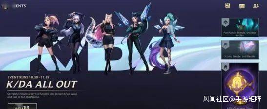 目前LOL端遊和《王者榮耀》都進入了平穩階段,不管是用户體量還是影響力都觸及到了天花板。雖然市場上游戲產品的數量在不斷增加,但玩家的數量和時長是有限的,LOL手遊的初期戰略目標自然是“為IP品牌不斷注入活力,並將影響力擴散到移動端以及更年輕的用户羣體”。最直接的證明就是,LOL手遊公測版本中除了KDA女團外,再沒有營銷活動。KDA女團是LOL品牌多元化、潮流化的一張重要拼圖,並且和電競賽事S10全球總決賽有深度綁定。LOL手遊公測第一個營銷活動就是KDA女團,其戰略目的自然也是為整個IP體系實現曝光導量,並作為LOL品牌跨平台化的排頭兵。