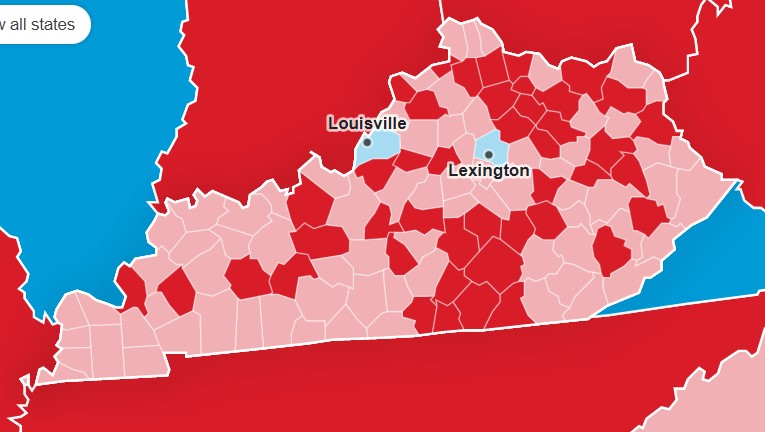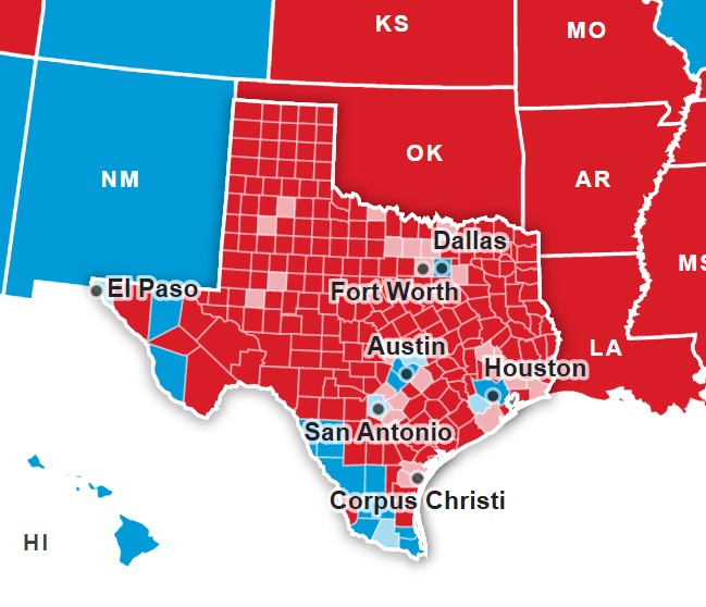 不管是在鐵桿紅州德克薩斯、肯塔基,還是在被特朗普拿下的戰場州俄亥俄、佛羅里達,還是在尚在點票、很可能被特朗普拿下但不排除翻藍可能性的佐治亞、賓夕法尼亞,民主黨席捲了幾乎所有的大中城市,共和黨則席捲了幾乎所有農村。