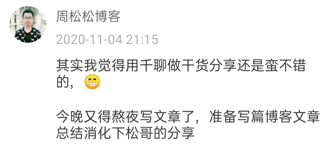 再次聽完了大佬的分享,不光學到了很多經驗,認識了幾個朋友,也領悟到輸出內容價值的重要性。打造個人IP 分享乾貨才能走得更遠!