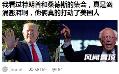 《我看過特朗普和桑德斯的集會,那真是洶湧澎湃啊,只有他們倆真的打動了美國人》——jlmnet