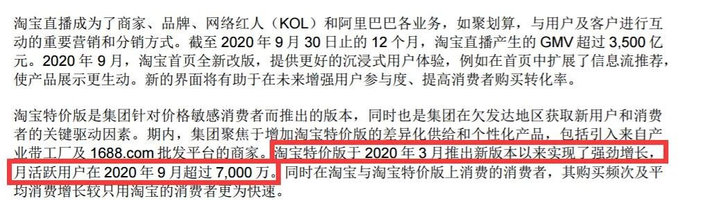 據財報披露,淘寶特價版在第三季度聚焦於“增加差異化供給和個性化產品”,包括引入來自產業帶外貿工廠以及1688的商家,從2020年3月份推出新版以來,月活躍用户超過了7000萬,相較於只用淘寶的消費者,同時在淘寶與淘寶特價版上消費的用户,購買頻次和平均消費增長都有很大的促進。