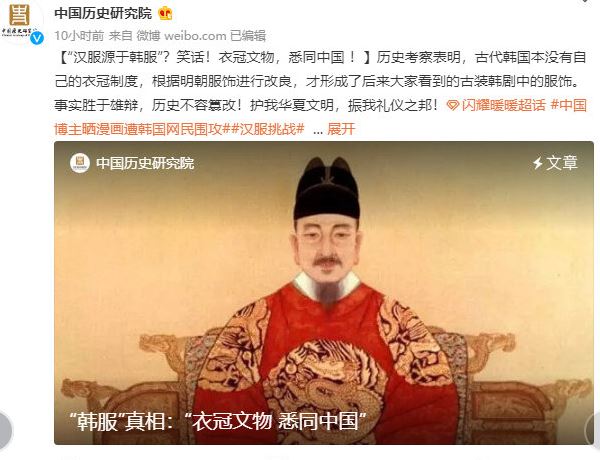 有網民扒到,一件“明朝漢服”傷到了不少韓國網民的自尊心。