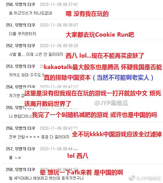 不少韓國網民在想着要不要抵制一下中國遊戲,拉一張清單出來。