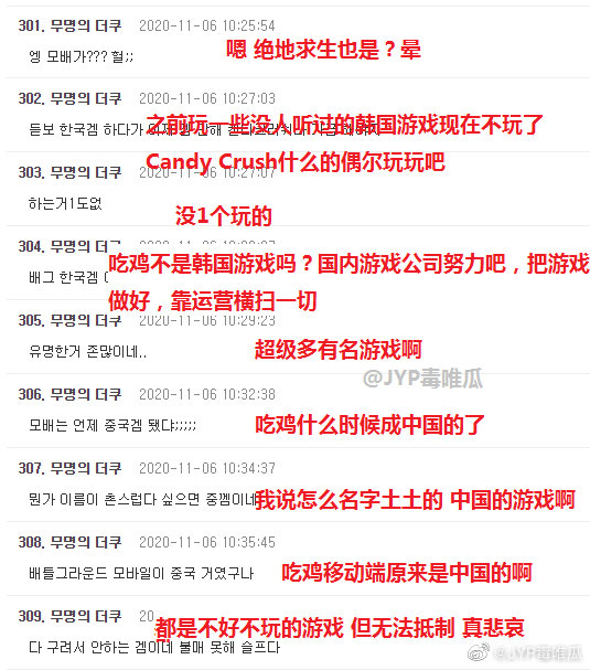 韓國網民A:還好我不玩遊戲,(手動捂臉)可這裏面好多都是我知道的。