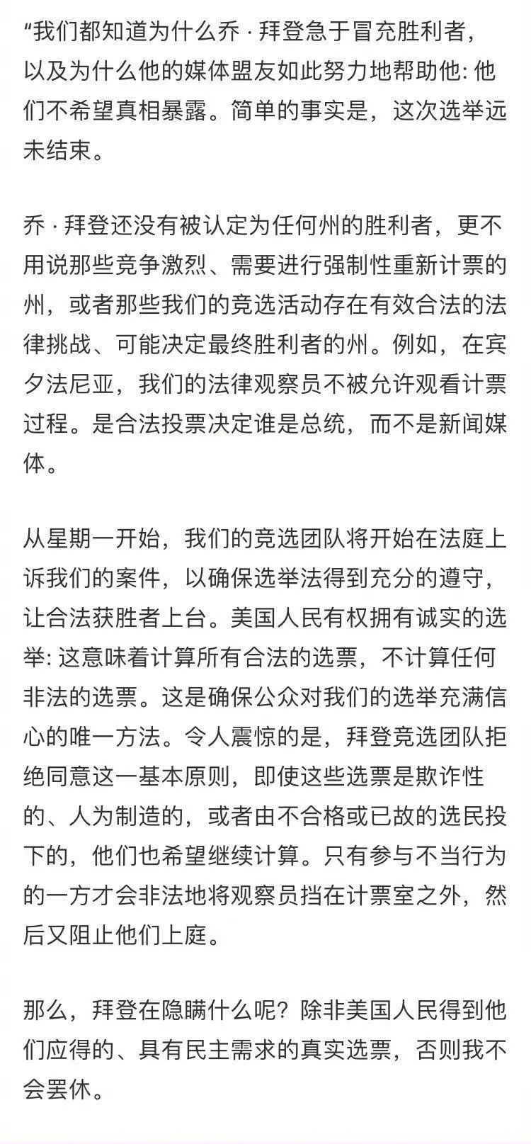 聲稱拜登冒充勝利者