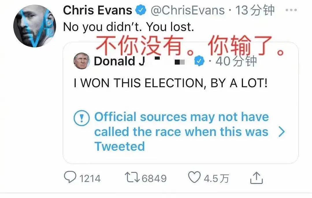 特朗普之前還發博説自己贏了,贏了很多