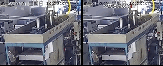 12時52分20秒,日用品包裝車間的男員工來到香水灌裝車間查看火情,離他發現火情已過去整整2分鐘,看到火勢變大後,他慌忙跑出生產車間。