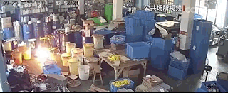 他首先用嘴去吹,但火不僅沒滅,反而更大了;他又拿蓋子去蓋,發現桶蓋和桶並不吻合。此時,裝原料金屬桶內的殘留易燃液體也已被引燃,緊接着,一個火點瞬間變成了兩個火點。