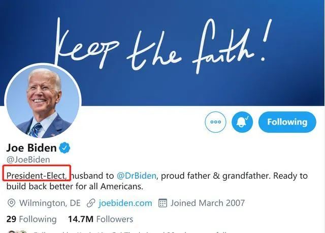 並且,他的個人介紹已經改成了“美國當選總統”。