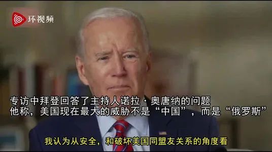 儘管,在10月美國CBS電視台《60分鐘》節目,拜登表示:“我認為美國目前面臨的最大威脅是俄羅斯,因為俄羅斯破壞了美國的安全和同盟關係。”