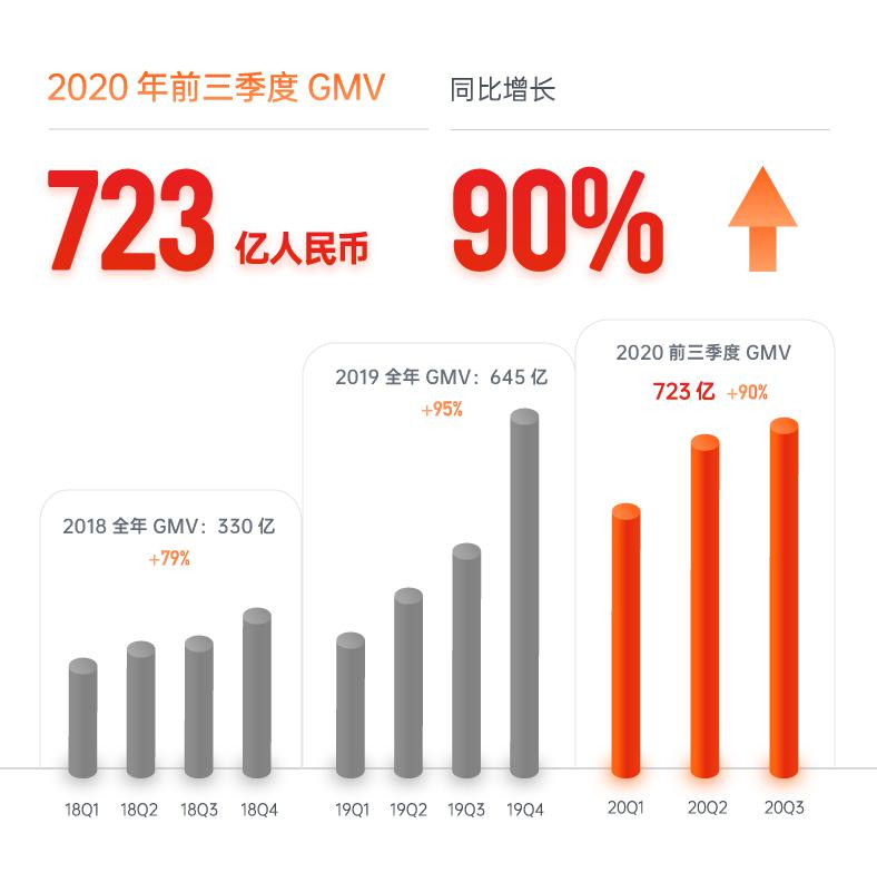 2020年11月9日,有贊發佈其2020年Q3財報顯示,2020年前三季度,有贊服務商家的GMV達到723億元人民幣,相較於2019年同期,同比增長達90%,新增付費商家數量為45328家,相較於2019年同期,同比增長22%。