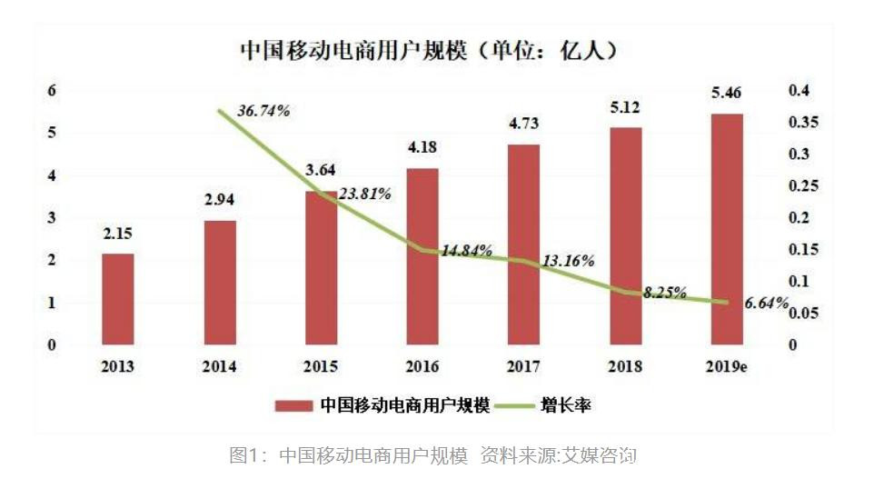 隨後,經過一段時間的發展,從2012年起,中國的移動互聯網用户就已經全面趕超PC互聯網用户,至2016年第二季度,移動應用在社交,視頻,新聞,工具以及購物領域的滲透率就已經超過50%——不過,這也成為移動互聯網的頂峯,據艾瑞諮詢相關研究數據顯示,2014年,中國電商市場交易規模已經達到(GMV)其增速的巔峯,而後增速一路下跌,至2017年後,基本穩定在10%左右(如圖2),尤其在2020年,在經濟寒冬和疫情的共同影響下,每個流量的購買會更加保守,對這一增速極有可能產生負面影響。