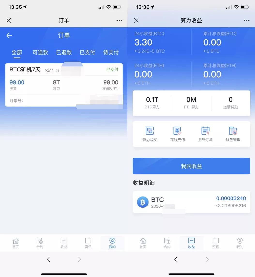 換言之,一側是租用算力的礦工(個人投資者),另一側是連接着礦機所收益(比特幣等),且挖礦平台宣稱“短時間、低成本獲取數字貨幣”。