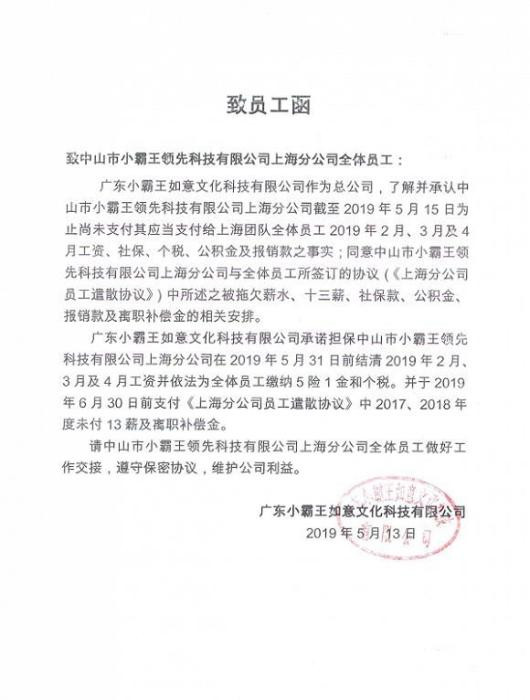 小霸王致員工函把欠薪事件擺在了桌面