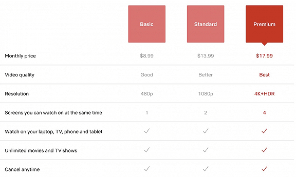 兩週前,國際流媒體巨頭Netflix剛剛進行五年以來的第三次價格上調,北美地區標準會員的價格上漲到13.99美金,而這個價格是國內視頻網站會員價格的五倍。