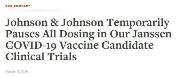 就在一個月前,10月14日,強生團隊的三期測驗被“暫停”,因為出現了不明原因疾病的一位志願者。
