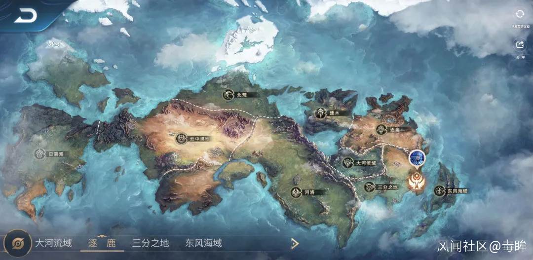 基於此,現有世界觀的搭建經歷了漫長的佈局:團隊需要先為每個英雄添加出生背景和人物設定,從而形成“王者大陸”的雛形。此後,再讓這些英雄之間逐漸建立關係,並最終形成了如今包含北荒、雲中漠地、雲夢澤、三分之地等在內的,統一的王者大陸,目前這個地圖仍在擴充當中。