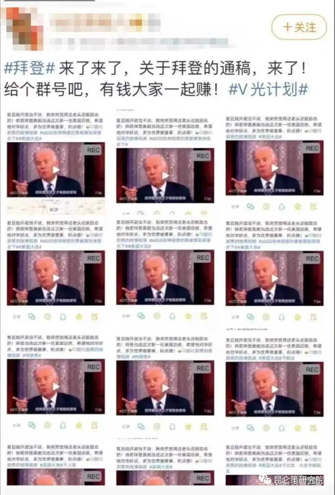不但文字感人,而且還統一配發了視頻,這九張圖還只是小小一部分。朋友圈、某短視頻平台等其它平台也開始傳播了,還特別加了一句“暫且拋開政治不談”。但以上賬號個人歷史中,絕大多數在幾年以來都沒有提及過任何跟拜登有關的信息。