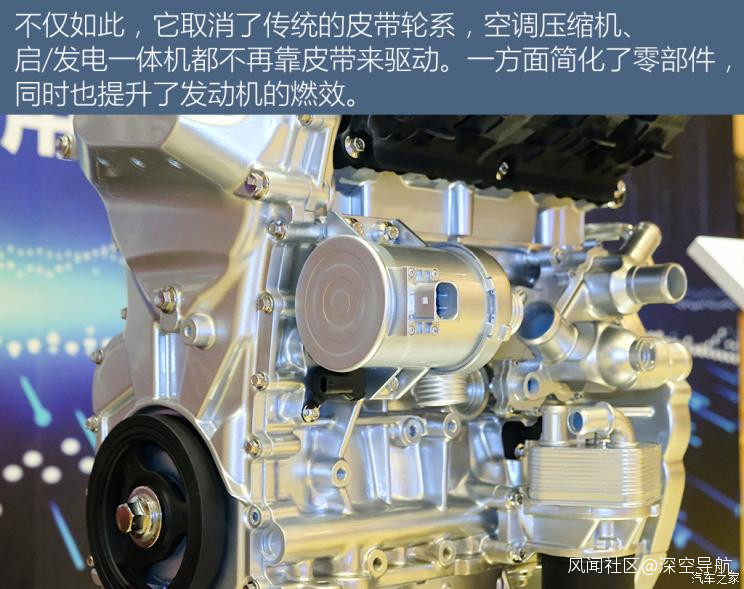 雖然這台發動機的熱效率指標達到了世界前列,但它的硬件配置並不算“豐富”,因為它做了很多減法,它沒有缸內直噴、沒有排氣側VVT正時機構、沒有渦輪增壓器等等。