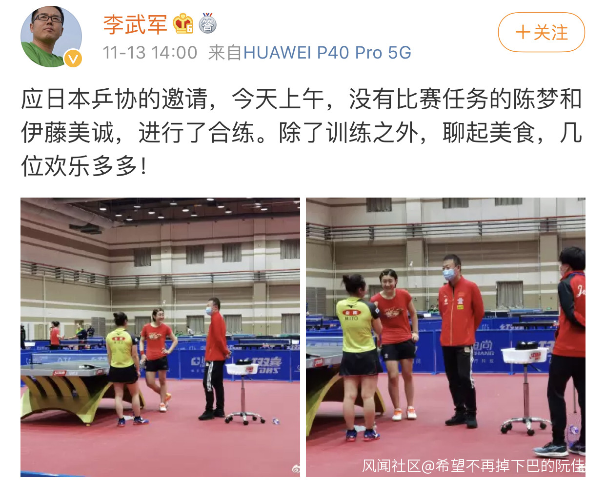 今天上午,沒有比賽任務的陳夢和伊藤美誠進行了合練。據央視乒乓球專項記者@李武軍 透露,此次合練是應日本乒協的邀請促成的。