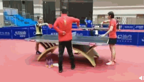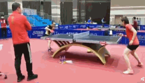 陳夢的主管教練、國乒女一隊教練組組長馬琳在一旁指導,興起了也跟伊藤美誠打了起來。