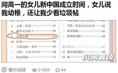 《問高一的女兒建國時間,女兒説我幼稚,還讓我少看垃圾帖》——看你説啥